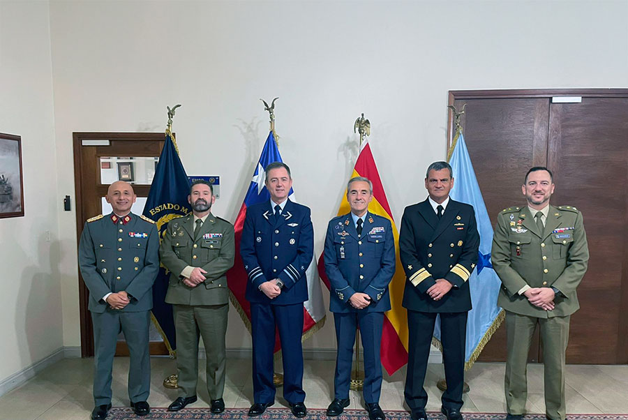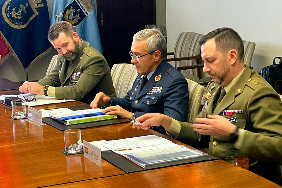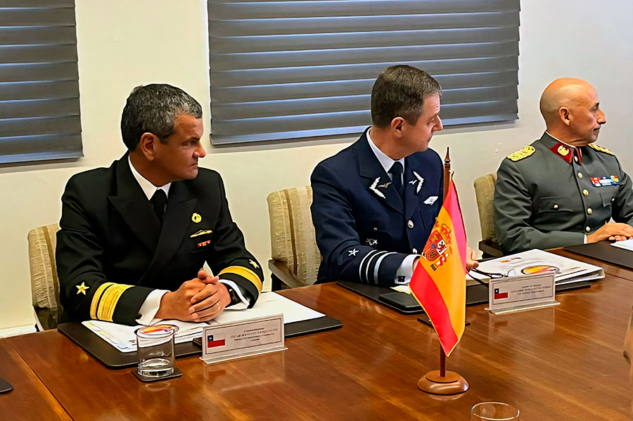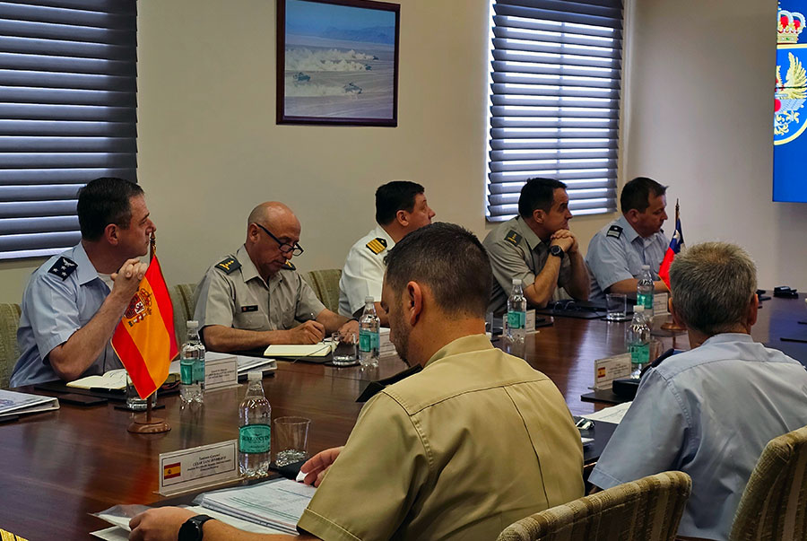 Durante la reunión, los presentes abordaron el estado actual de las relaciones en materia de Defensa entre Chile y España, destacando que las Fuerzas Armadas de ambos países han tenido históricamente actividades de intercambio y cooperación.