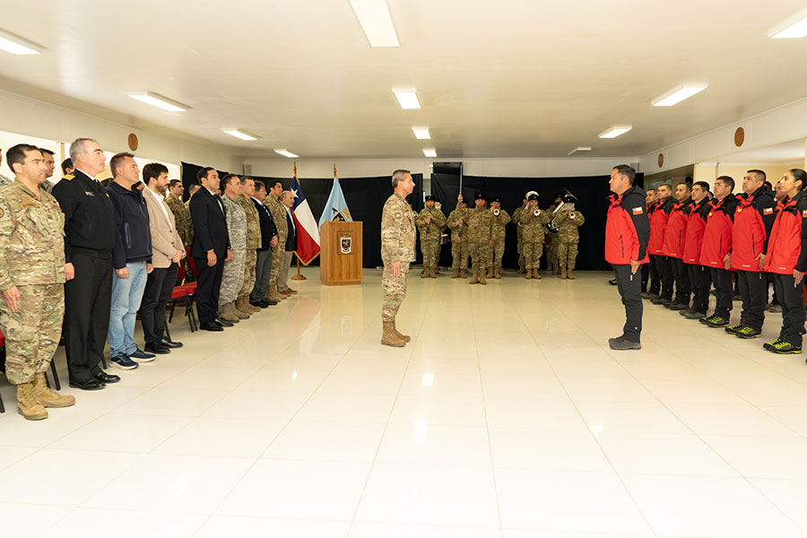 Este 14 de noviembre, en la ciudad de Punta Arenas, se realizó la ceremonia de despedida de la dotación que será desplegada a la Estación Polar Científica Conjunta “Glaciar Unión”, iniciativa en la que participan las Instituciones de las Fuerzas Armadas, así como el Instituto Antártico Chileno y la DGAC, con el propósito de desarrollar tareas científicas a 1.080 kilómetros del Polo Sur.