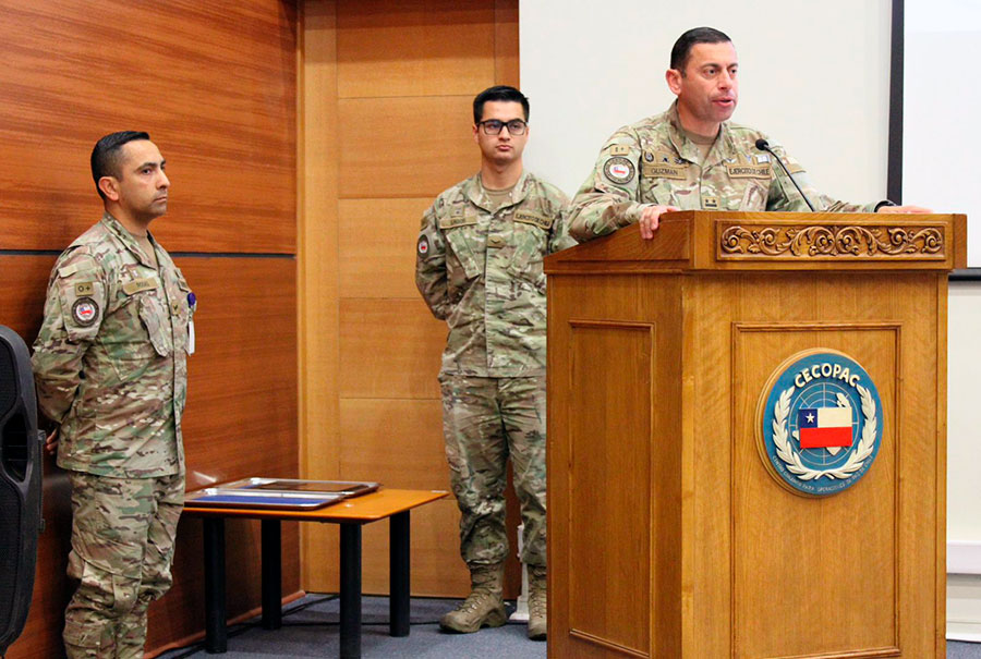 La ceremonia fue encabezada por el Director Subrogante de CECOPAC, Teniente Coronel Ricardo Guzmán Uribe, quien entregó las palabras de cierre, deseándoles éxito en esta nueva misión representando a Chile.