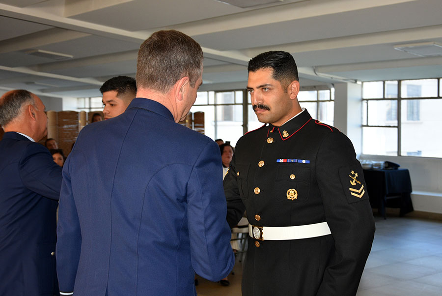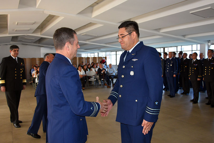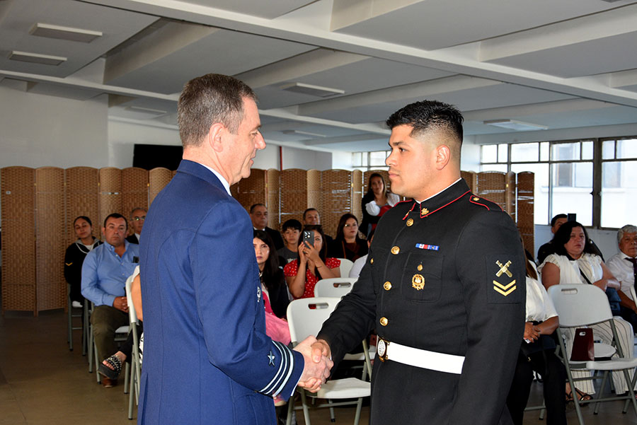 Posteriormente, el General Romanini se dirigió a los asistentes, agradeciendo en primer término la presencia y el permanente apoyo de los familiares del personal ascendido y destacando la trayectoria e hitos profesionales que permitieron al personal alcanzar este nuevo grado. Asimismo, señaló que este reconocimiento conlleva mayores responsabilidades y exigencias acordes a su investidura, deseándoles finalmente éxito en todos los ámbitos, con el orgullo de asumir nuevos compromisos y representar a sus respectivas instituciones.