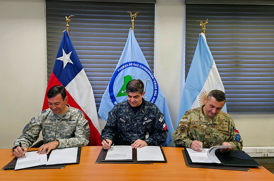 Asimismo, para este 2026 y en cumplimiento del ciclo de rotación anual, se efectuó el cambio de sede del Estado Mayor Conjunto Combinado de la Fuerza de Paz Combinada Cruz del Sur, pasando de Buenos Aires a Santiago de Chile.