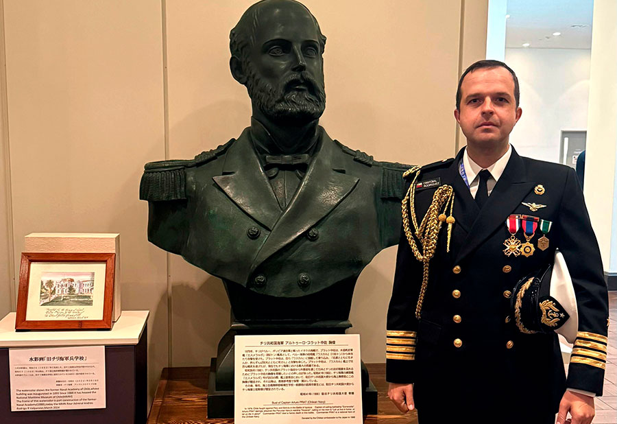 Durante el recorrido de las autoridades al museo marítimo, se dedicó una visita especial al busto del Comandante Arturo Prat, que se encuentra presente en las solemnes dependencias navales japonesas desde el año 1966.
