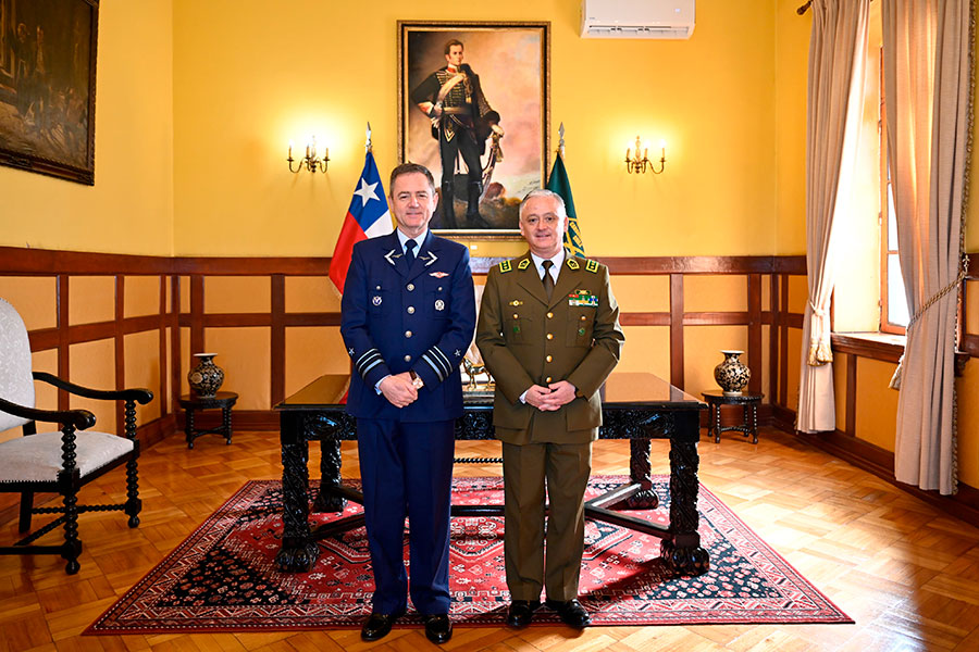 Este 24 de abril, el Jefe del Estado Mayor Conjunto, General de Aviación Leonardo Romanini, realizó un saludo protocolar al Director General de Carabineros, Marcelo Araya con motivo del 99° Aniversario de la Institución este próximo 27 de abril.